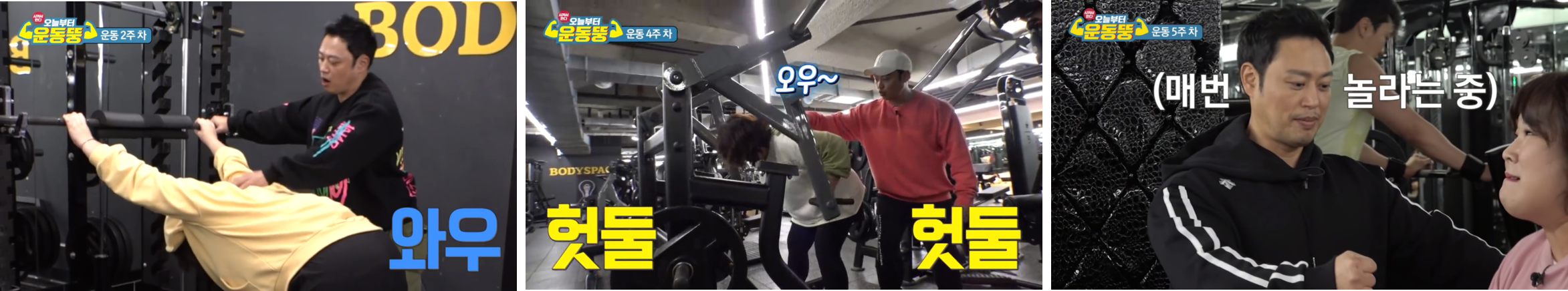 왜 갑자기 드라마 얘기로 화났냐고? 흠흠. 그러니까 대중들이 성장 과정을 참아 줄 수 있는, '성장' 자체가 포멧인 프로그램이 있고, 성장을 참을 수 없는 프로그램이 있다는 것. 드라마는 연기자의 성장을 참아줘야 하는 프로그램이 아니다. 이에 비해 '운동뚱'은 다르지. 프로그램 특성상 못해도 참아 줄 수 있다. 사실 캐릭터 성장이 포인트인 프로그램 아닌가! 그런데...
