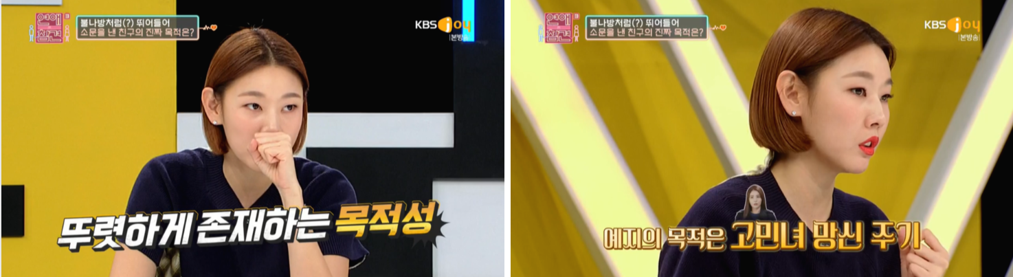 <연애의 참견>은 <무엇이든 물어보살>과 더불어 KBS Joy의 효자 프로그램. 이 두 프로그램은 평소 유튜브를 통해 간간이 챙겨 보던 프로그램이었다. 짤방으로 시작한 시청은 본방 시청으로 이어졌고, 내가 챙겨보는 몇 안 되는 방송 중 하나가 되었다.