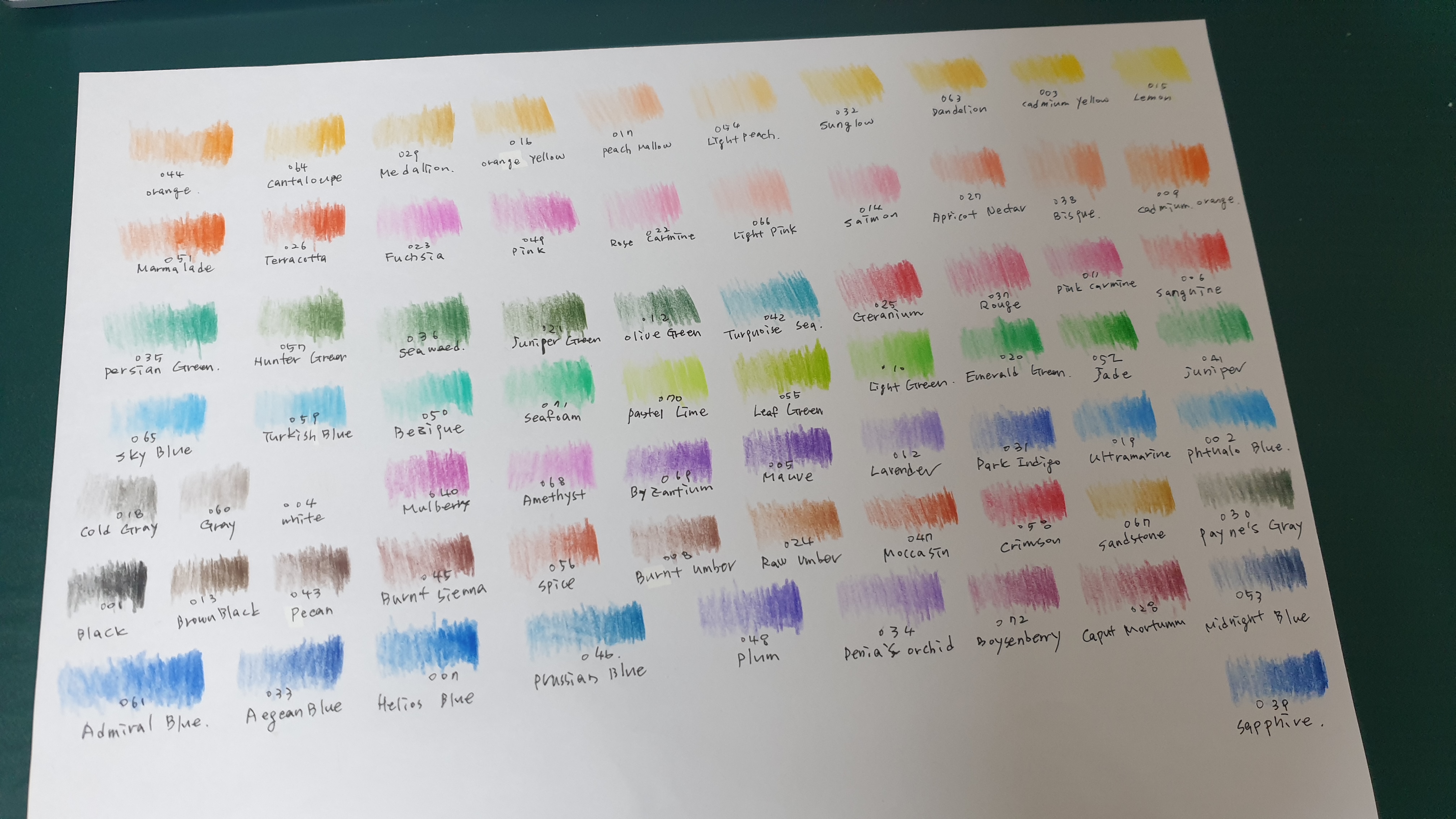 내친김에 발색을 보기 위해 색상표도 만들어 보았다.